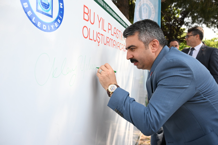 Bursa Yıldırım Belediyesi tarafından düzenlenen Dünya Çevre Günü etkinlikleri kapsamında Belediye Başkanı Oktay Yılmaz ve Yıldırımlılar, yıl boyunca plastik atık oluşturmayacaklarına dair taahhüt metnini imzaladı.