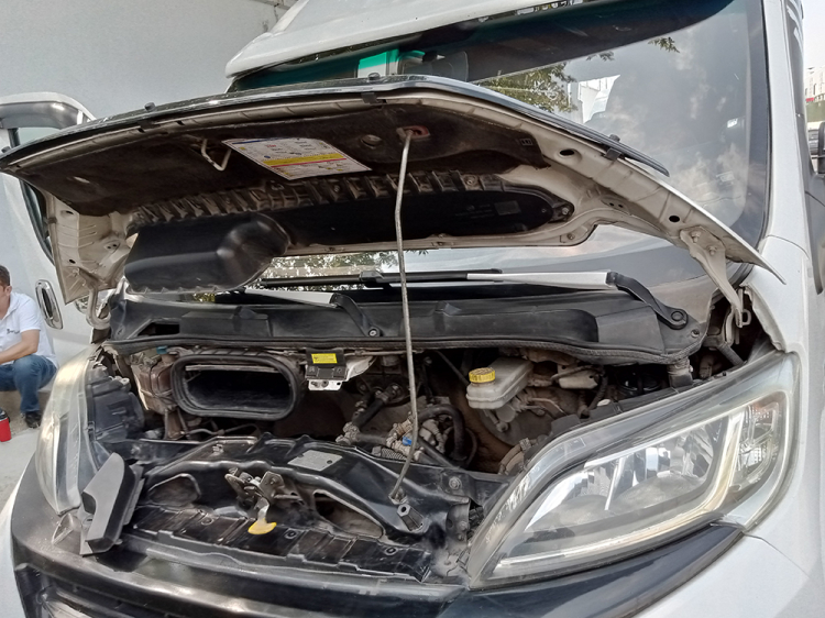 “Havalar çok sıcak. Haliyle bu da arabalarımızın motorlarını etkiliyor ve hararete yakalanıyor. Biz de durduğumuz vakitlerde arabalarımızın kaputlarını açarak motorlarımızın hava almasını sağlıyoruz, kendimize böyle bir çözüm ürettik.”