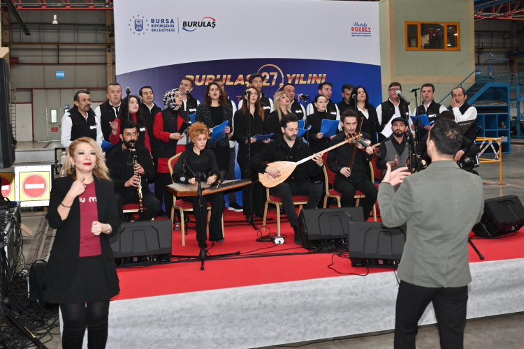 Konuşmaların ardından BURULAŞ çalışanlarının oluşturduğu koro tarafından mini konser verildi. Program, Başkan Mustafa Bozbey ve beraberindekilerin katılımıyla 27. yıl pastasının kesilmesiyle sona erdi.