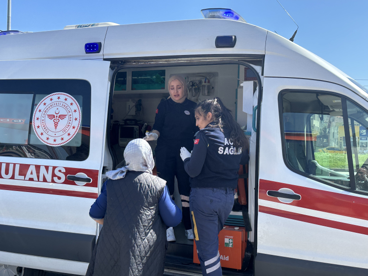 İhbar üzerine bölgeye sağlık ve polis ekipleri sevk edilirken, yaralı kadına tedavisi olay yerinde yapıldı.