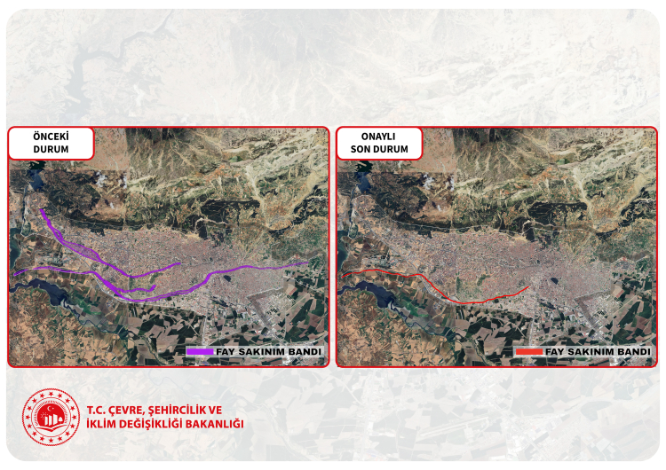 Afşar Mahallesi’nden başlayan ve Hayrullah Mahallesi’ndeki stadyum civarında sonlanan bölgeden geçen fay zonu segmentlerinde ise deprem üretme riskinin bulunduğunu dile getiren Bakan Kurum bu bölgede yapılaşma gerçekleştirilmeyeceğinin altını çizdi. Bakan Kurum “Kentin güneyinden geçen fay segmentinde deprem üretme potansiyeli tespit edilmiştir. 70 metre genişliğinde ‘fay sakınım bandı’ bırakılmıştır” bilgisini verdi.