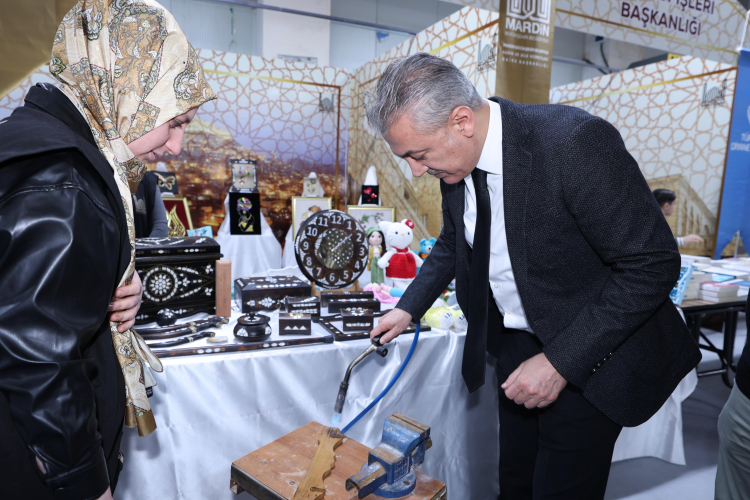 MARDİN (İGFA) – Genel Sekreter Fatih Eroğlu’ndan yapılan çalışmalar hakkında bilgi alan Vali Akkoyun, fuar alanında kurulan standları gezerek esnaf ve vatandaşlarla sohbet etti.