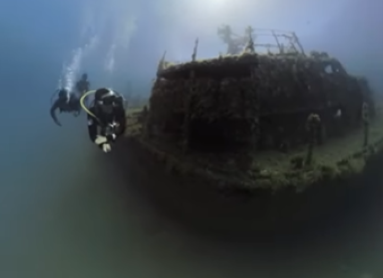Saros’ta yapay resif projesi kapsamında batırılan gemi, dalgıçlar tarafından görüntülendi.