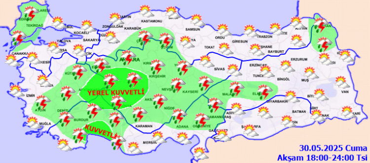ANKARA (İGFA) – Meteoroloji Genel Müdürlüğü, 30 Mayıs Cuma gününe ilişkin hava tahmin raporunu yayımladı.