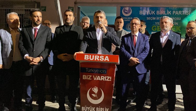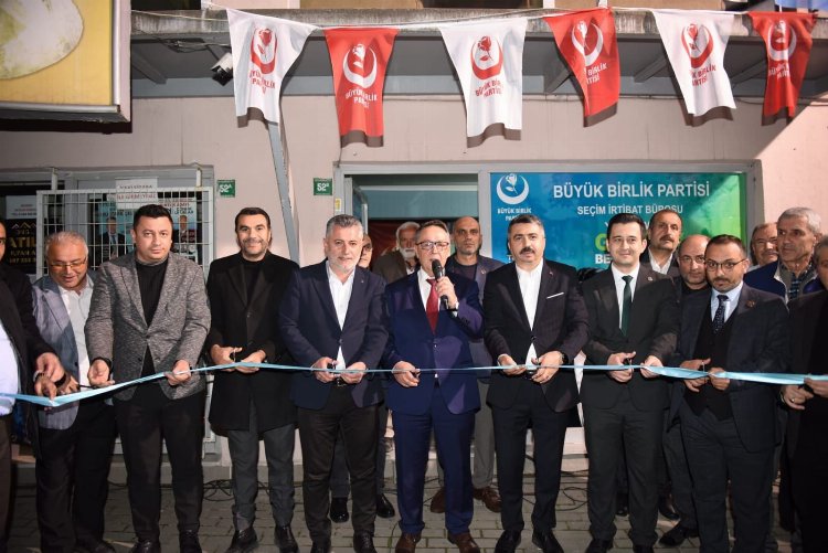 Büyük Birlik Partisi Genel Başkan Yardımcısı Ekrem Alfatlı seçim bürosu açılış konuşmasında “şehit genel başkanımız ebedi siyasi liderimiz Muhsin Başkanımızın ayak izlerine basarak, her daim zalimin karşısında mazlumun yanında yer aldık. ifadelerinde bulunup Seçim büromuzun açılışı hepimize hayırlı uğurlu olsun bu seçimlere birlikte hayırlı bir şekilde 31 Mart ‘da sonlandırmayı Allah bizlere nasip etsin dedi.