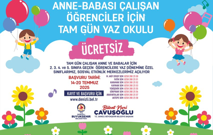 DENİZLİ (İGFA) – 2., 3., 4. ve 5. sınıfa geçen öğrencilere yönelik hazırlanan “Ücretsiz Tam Gün Yaz Okulu” programı ile yaz tatili boyunca öğrenciler hem öğrenecek hem de eğlenceli vakit geçirecek.