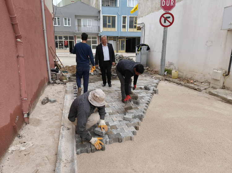 Edirne’de Süloğlu Belediyesi, ilçe genelinde başlattığı kilit parke taş döşeme