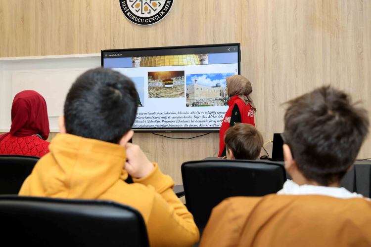 Ali Ulvi Kurucu Gençlik Merkezi’nde devam eden Kadim Kudüs Okulu programı kapsamında, ortaokul öğrencilerinin Kudüs ve Filistin bilincini artırmak, tarihi, dini ve kültürel farkındalık kazanmalarını sağlamak amacıyla üç aşamalı eğitim ve atölye çalışmaları düzenlendi. Program kapsamında; Kudüs’ün İslam dünyası ve diğer dinler açısından önemi, Kudüs tarihi, Filistin coğrafyası ve mimarisi, Filistin’in öncü şahsiyetleri, semboller, boykot bilinci, sanal tur uygulamaları ve uygulamalı atölye çalışmaları yer aldı.